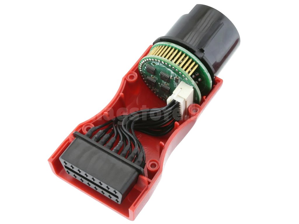 Напълно окабелен адаптер за автомобили Mercedes с 38-пинов диагностичен конектор. Благодарение на вградения мултиплексор, всички устройства могат да бъдат свързани. Може да се използва например с iCarsoft V2.0, V3.0, CR Pro или CR Max.