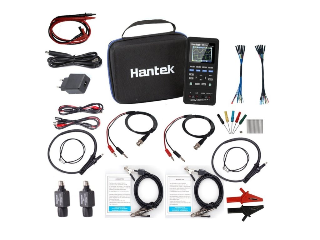 Hantek 2D82 е многофункционално устройство, проектирано специално за употреба в автомобила. То включва осцилоскоп, генератор на вълнови форми и мултицет, като същевременно включва и специализирани диагностични функции. Този преносим осцилоскопработи с батерии и се презарежда чрез USB Type-C кабел (включен в комплекта).