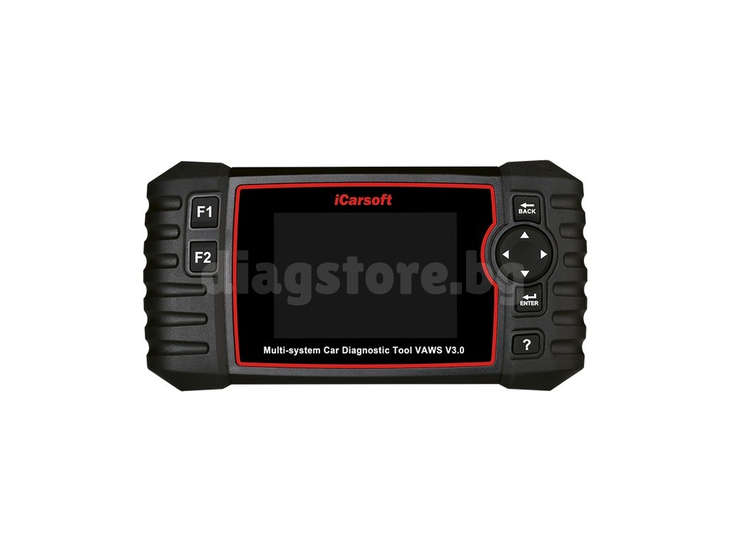 iCarsoft VAWS V3.0 е диагностичен инструмент, позволяващ свързване към всички управляващи блокове на автомобили Volkswagen, Audi, Seat, Cupra и Skoda. Устройството е оборудвано с **4" цветен екран** и е готово за употреба. **Актуализациите на софтуера на устройството са напълно безплатни** и се извършват чрез компютър (включен е USB кабел). Устройството разполага с широка гама от поддържани езици. **Поддържат се автомобили от 1996 до 2020 г.** Инструментът позволява **подробна диагностика на всички агрегати** и предлага **голям брой сервизни функции**, като например нулиране на сервизните интервали, регенерация на DPF филтъра, диагностика и освобождаване на електрическата ръчна спирачка, кодиране на инжектори, регистрация на батерията и много други. **Устройството е свързано към автомобила чрез OBD-II кабел.**