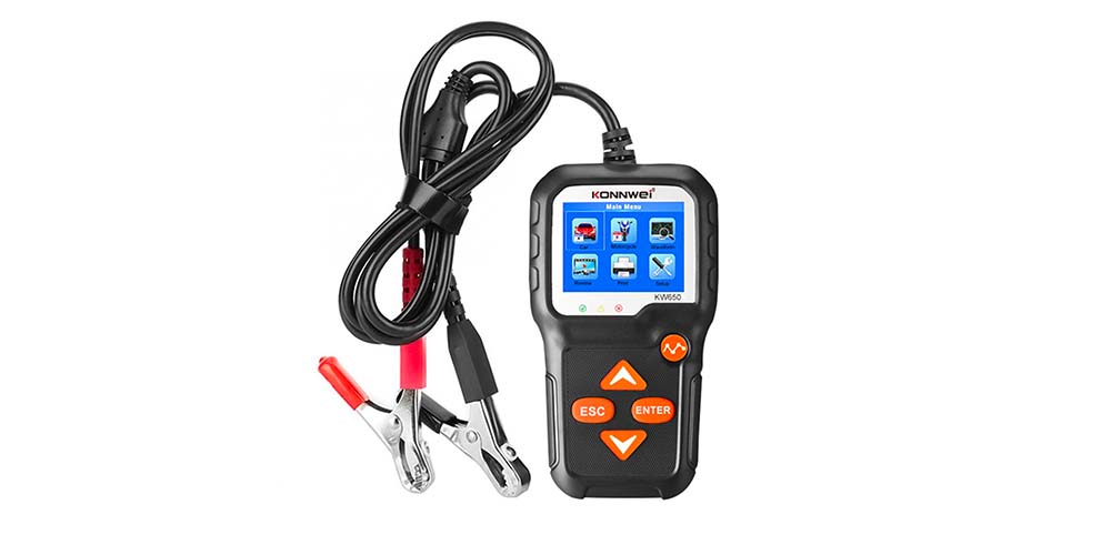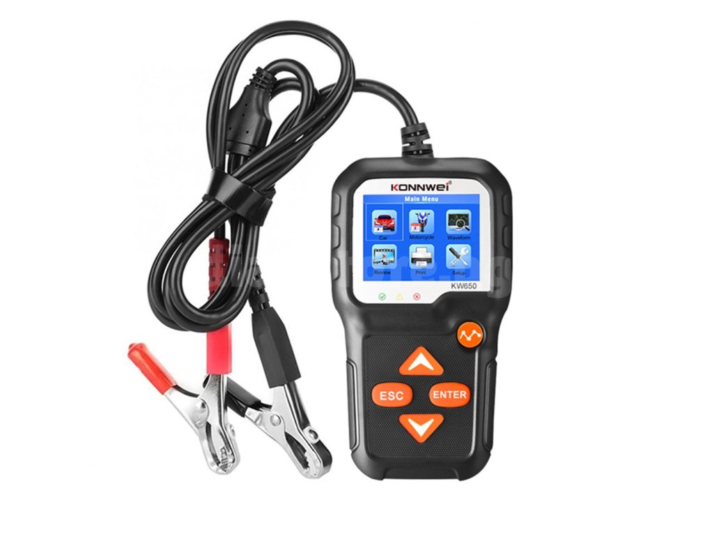 Konnwei KW650 е тестер за автомобилни акумулатори с ясен цветен дисплей и удобна работа, която осигурява ранно предупреждение за необходимостта от смяна на батерията. Бърза реакция благодарение на чипсета STM32. Точни резултати и широк спектър от приложения за повечето автомобилни или морски акумулатори. Поддържат се всички видове автомобилни акумулатори, включително гел, AGM и течни батерии. Защита срещу неправилно окабеляване - обратното окабеляване няма да повреди инструмента, автомобилния акумулатор или превозното средство. Тестване по съответните стандарти, включително DIN. Новият инструмент позволява по-бързо показване на графиката в сравнение с KW600 - с помощта на специален бутон и също така поддържа тестване на 6V батерии. Освен това, под дисплея има и трио индикаторни светодиода.
