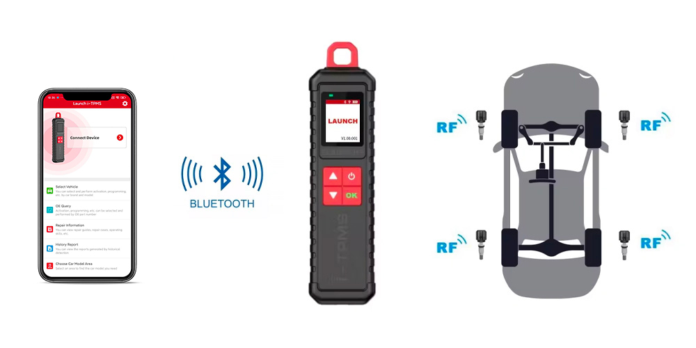 Launch i-TPMS е устройство за кодиране, клониране и създаване на нови TPMS клапани. Устройството може да се използва с поддържана Launch диагностика или може да се управлява чрез специално приложение за Android. Можете да кодирате клапани например от вашия смартфон.