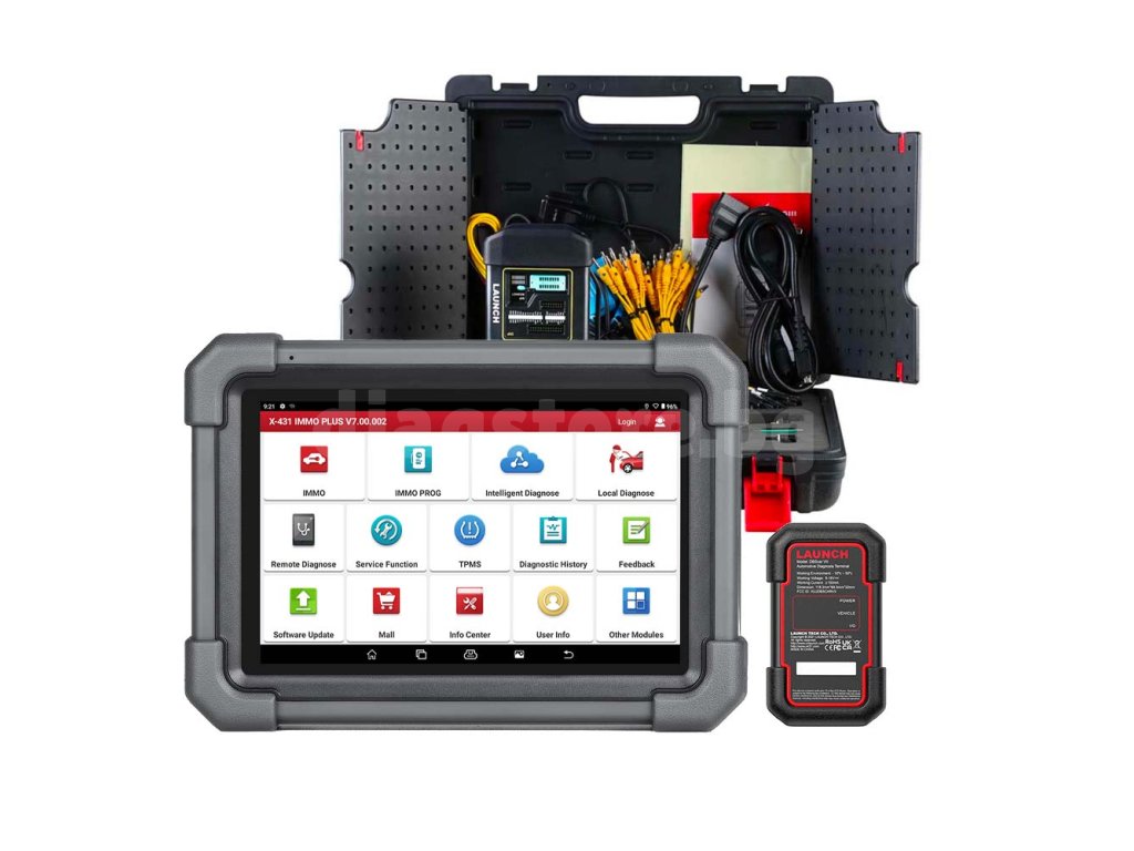 Launch X431 IMMO Plus предлага диагностика за всички устройства на повечето европейски, азиатски и американски автомобили във връзка с разширени сервизни функции. Той се свързва с всички устройства, може да чете кода за готовност и също така предлага над 37 сервизни функции - може да нулира сервизните интервали, да диагностицира и регенерира DPF, да извършва основни настройки на дроселовата клапа, да нулира адаптации на автоматичната трансмисия, да извършва основна TPMS диагностика, да регистрира батерията, да извършва кодиране на инжектори, кодиране на ключове и дистанционно управление и много други. Инструментът поддържа активни тестове, адаптации и кодиране. Той не е ограничен само до диагностика в рамките на стандарта OBD-II, но може да обработва и пълна диагностика на по-стари OBD-I автомобили.