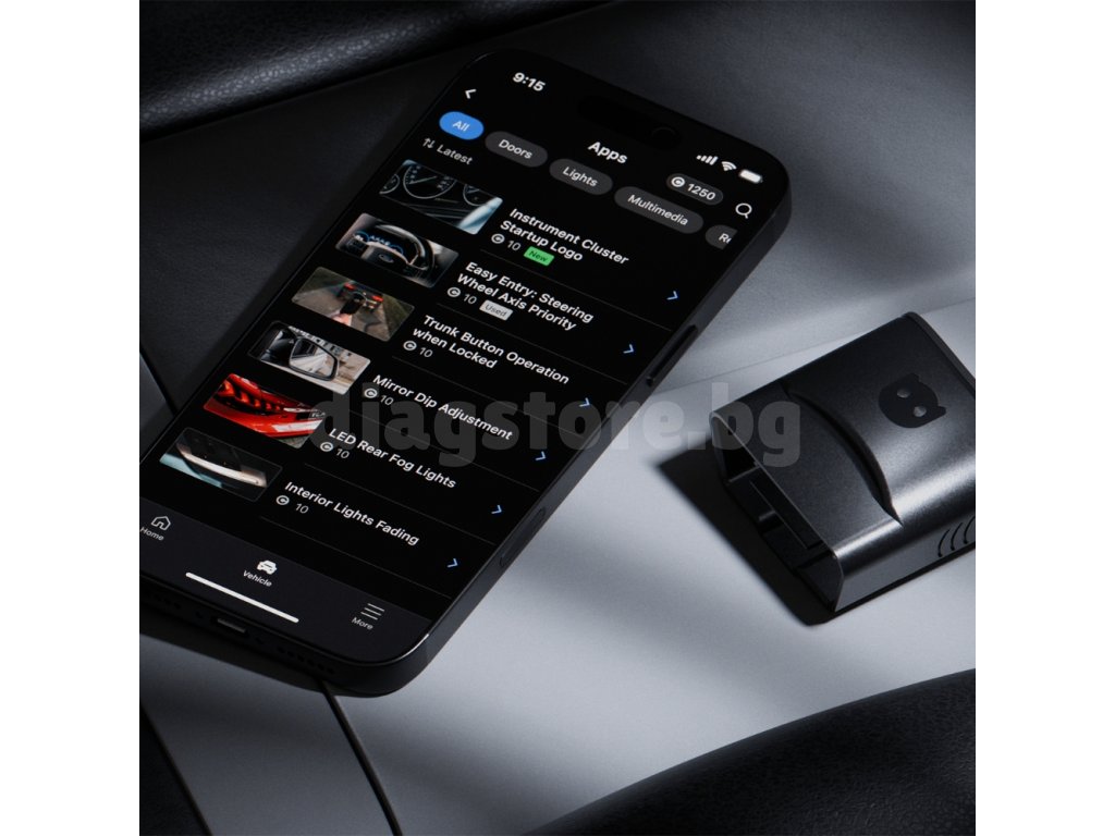Официално лицензиран от Volkswagen Group (VAG), BMW Group, Ford (US) и Toyota. OBDeleven диагностиката е подходяща за потребители с напреднали познания за кодиране и модифициране на автомобилен софтуер. Тя поддържа автомобили на Volkswagen Group (VAG) и основни функции също за автомобили на BMW Group (серии F, G и I), Ford (US) и Toyota. Диагностиката е съвместима с iOS, Android и Harmony. Има лесен за използване интерфейс, което я прави достъпна както за професионалисти, така и за начинаещи.OBDeleven не е продукт на Volkswagen, BMW, Ford (US) или Toyota.