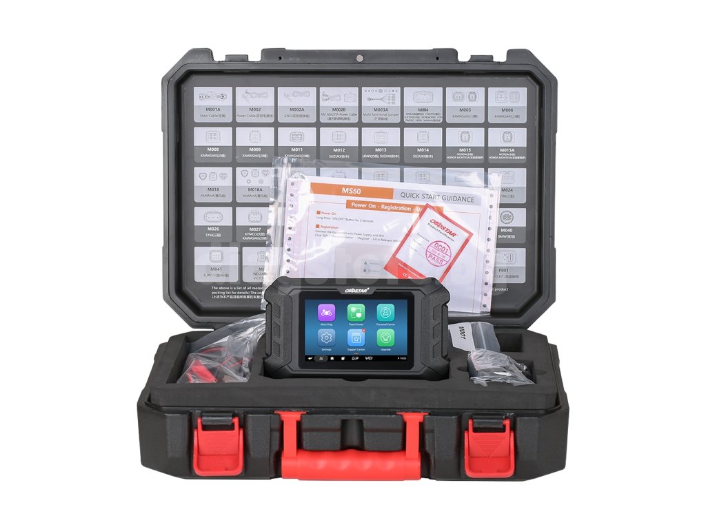 OBDStar MS50 Standard предлага интелигентна диагностика на професионално ниво, включително цялостни диагностични и сервизни функции. Инструментът ще открива неизправности, ще предоставя технически бюлетин, ще помага с наблюдение на показанията, местоположението на диагностичния букс и други функции, за да ви помогне да диагностицирате точно и ефективно. Голямо предимство е богатството от поддържащи технически данни, като например интерактивни електрически схеми, ръководства за отстраняване на неизправности и други. Включени са адаптери за свързване към избрани марки мотоциклети.