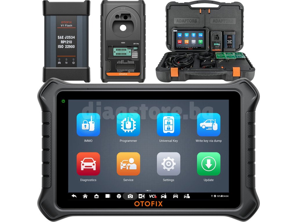 В комплекта е включен диагностичен адаптер, който се включва в диагностичния контакт на автомобила и позволява безжична комуникация с диагностичния таблет.