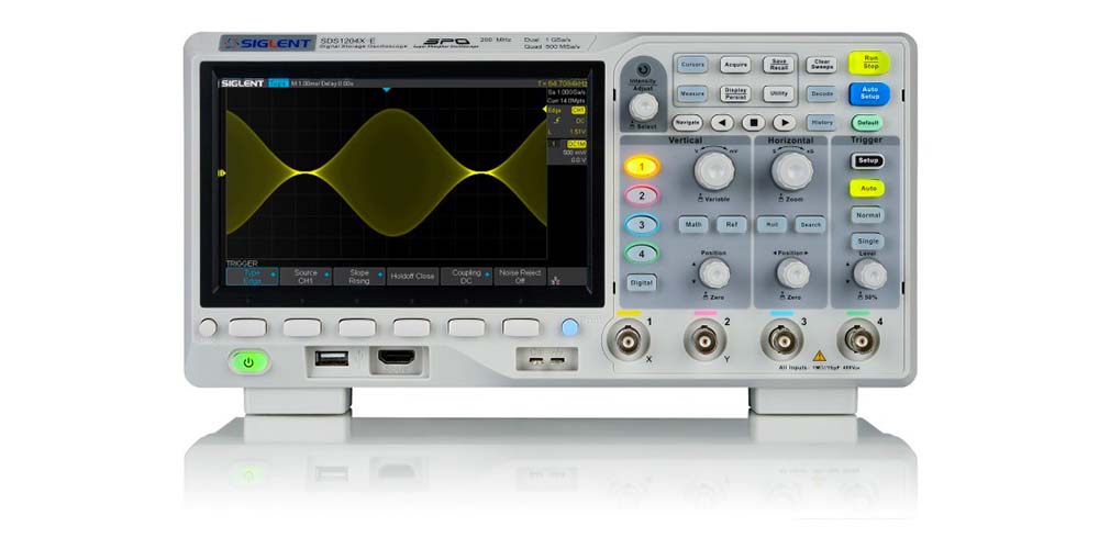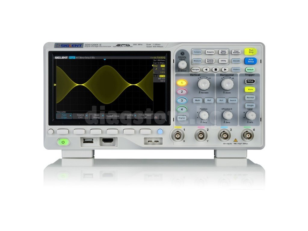 SDS1204X-E е четириканален модел от серията "SDS1200X-E", който може да измерва едновременно по до два канала. Сондатаима два аналогово-цифрови преобразувателя (ADC), така че може да измерва едновременно по два канала без загуба на честота на дискретизация. Ако всички канали са активни, сондата все още има 500MS/s на канал. Този модел има честота до 200Mhz и 14Mpts на четири активни канала.